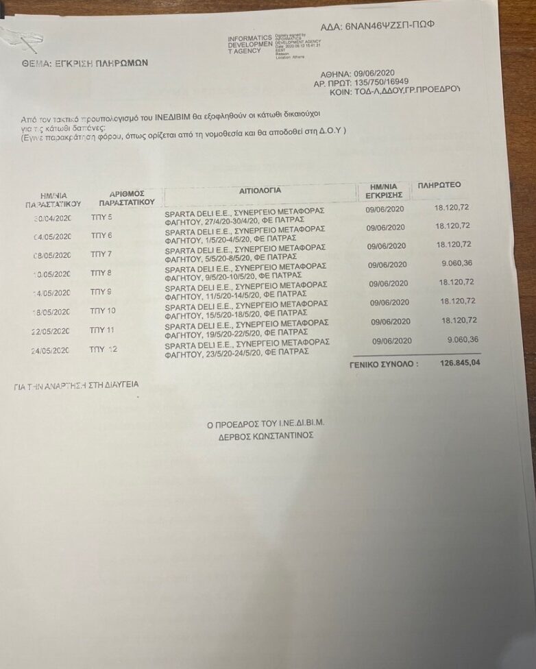Την περίοδο που για να κυκλοφορήσει κάποιος στο δρόμο έπρεπε να στείλει SMS ή – όπως αναφέρει καυστικά το ρεπορτάζ – «να έχει σκυλί», μια εταιρεία με την επωνυμία SPARTA DELI, με έδρα τη Σκάλα Λακωνίας, φέρεται να παρέδιδε γεύματα αξίας 166.106 ευρώ στη φοιτητική εστία Πάτρας στις 8 Απριλίου 2020.