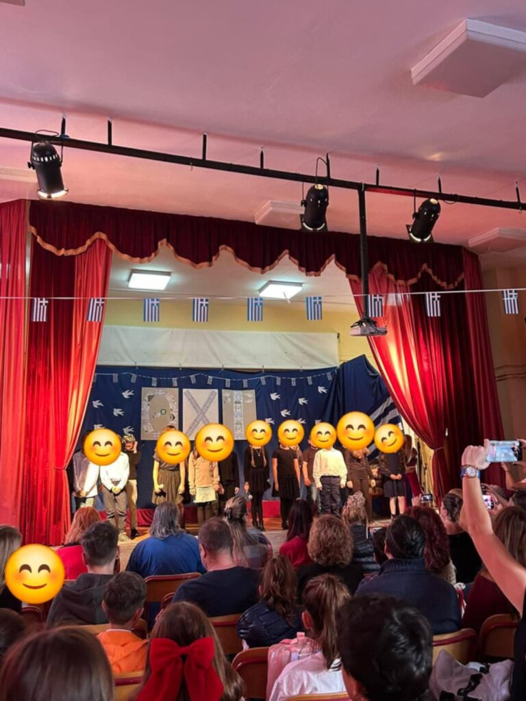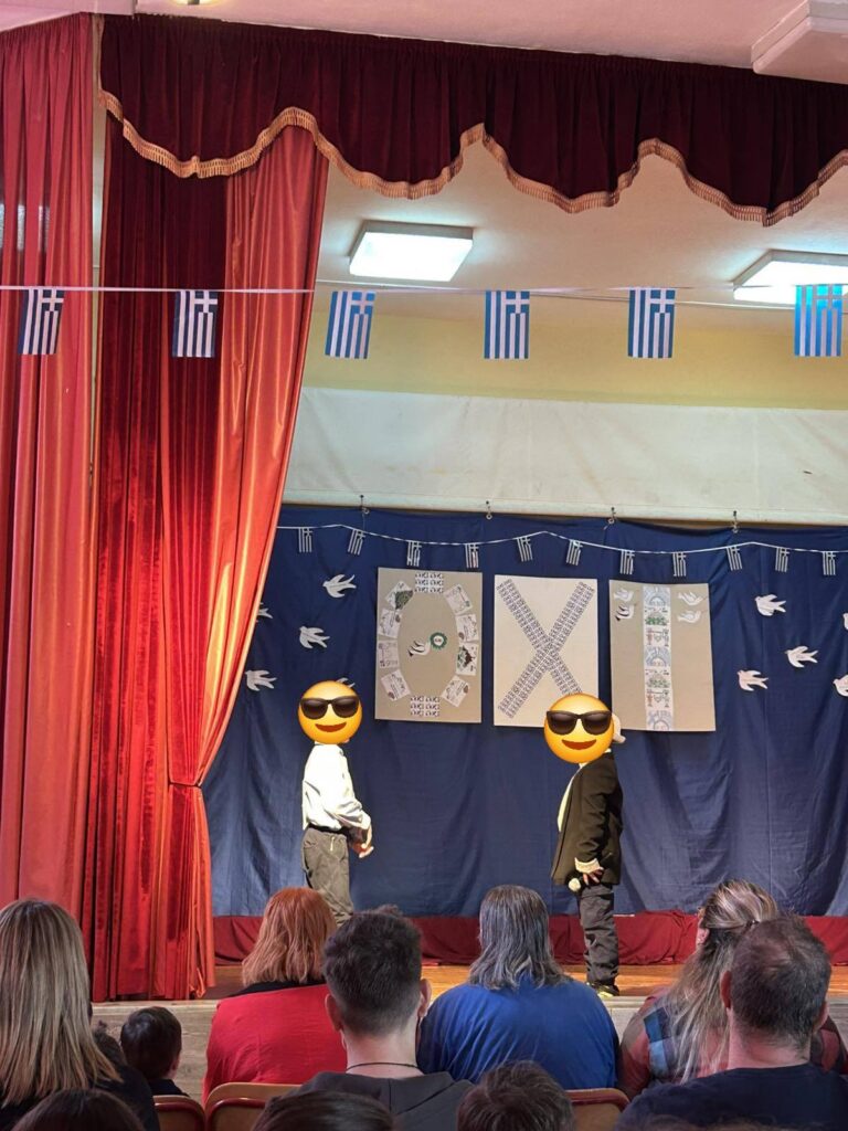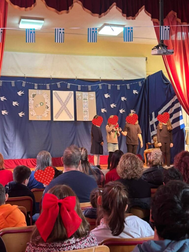 «Με πολλή αγάπη και συγκίνηση, το τμήμα της Δ΄ τάξης του σχολείου μας παρουσίασε τη φετινή γιορτή για την εθνική επέτειο της 28ης Οκτωβρίου 1940.