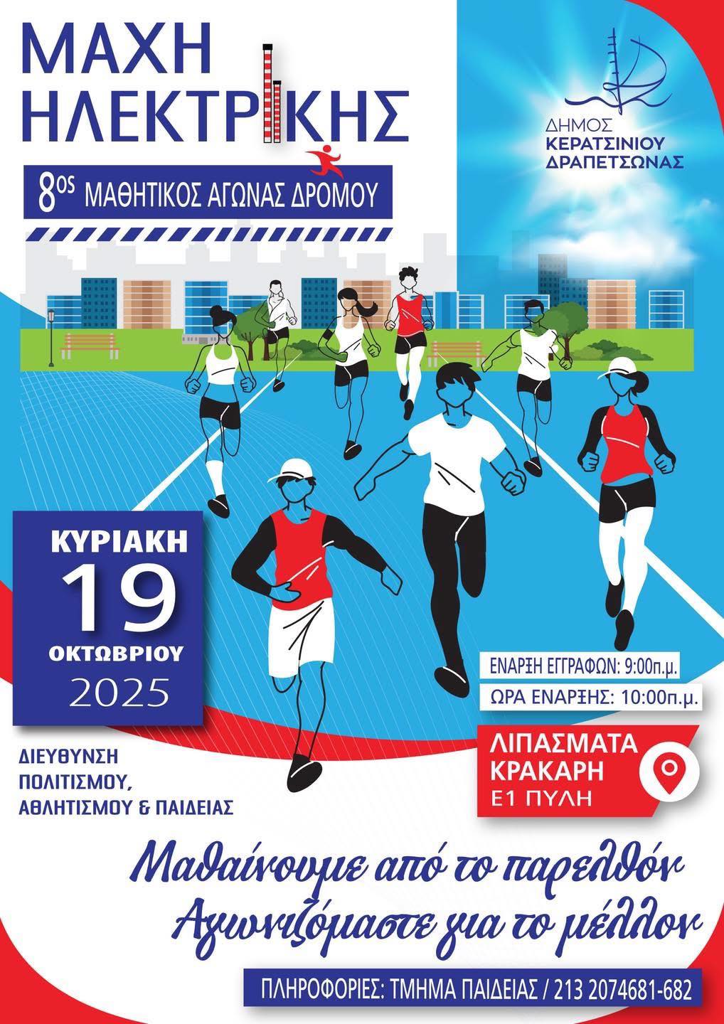 Αύριο, Κυριακή 19 Οκτωβρίου 2025, ο Δήμος Κερατσινίου-Δραπετσώνας τιμά τα 81 χρόνια από τη Μάχη της Ηλεκτρικής, με τη διοργάνωση του 8ου Μαθητικού Αγώνα Δρόμου στον Πολυχώρο Λιπασμάτων (Κράκαρης).