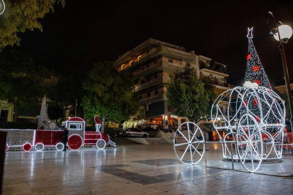 Στον φετινό στολισμό ξεχωρίζει η υπέροχη «λευκή» άμαξα με το επιβλητικό Χριστουγεννιάτικο δέντρο, τη φάτνη της γεννήσεως και το λαμπερό ερυθρόλευκο τρενάκι του Άγιου Βασίλη που συμπληρώνει το εντυπωσιακό εορταστικό σκηνικό στην πλατεία Ηρώων.
