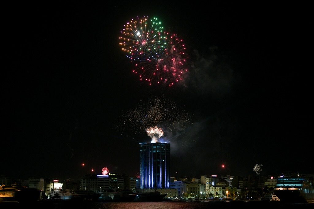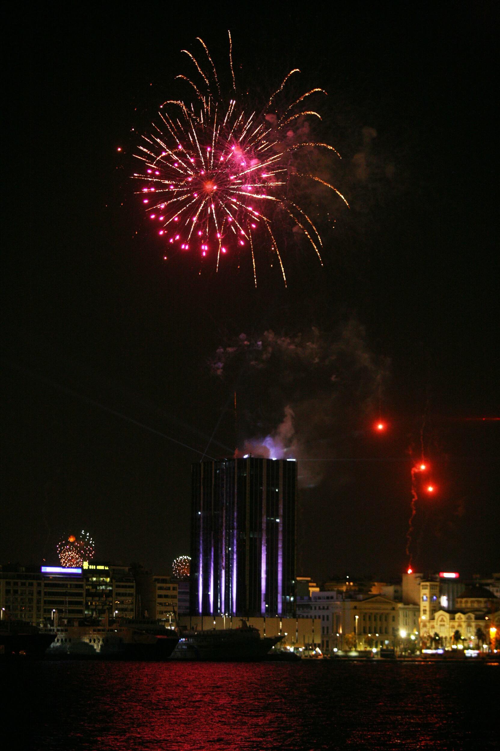 Με λαμπρότητα υποδέχθηκε ο Δήμος Πειραιά την έλευση του νέου έτους, καθώς ένα φαντασμαγορικό υπερθέαμα πυροτεχνημάτων, βεγγαλικών και φωτισμών με φόντο το μεγάλο λιμάνι εντυπωσίασε, με τους Πειραιώτες να βγαίνουν στα μπαλκόνια τους για να απολαύσουν μοναδικές γιορτινές εικόνες.