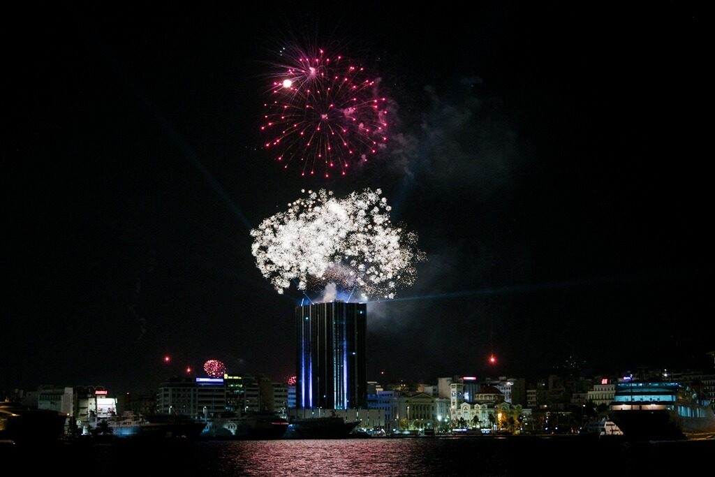 Με λαμπρότητα υποδέχθηκε ο Δήμος Πειραιά την έλευση του νέου έτους, καθώς ένα φαντασμαγορικό υπερθέαμα πυροτεχνημάτων, βεγγαλικών και φωτισμών με φόντο το μεγάλο λιμάνι εντυπωσίασε, με τους Πειραιώτες να βγαίνουν στα μπαλκόνια τους για να απολαύσουν μοναδικές γιορτινές εικόνες.