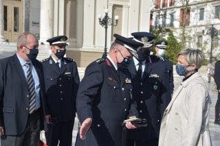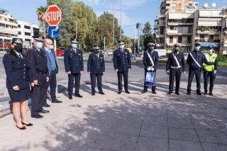 O Υφυπουργός Προστασίας του Πολίτη κ. Ελευθέριος Οικονόμου, μαζί με τον Αρχηγό της Ελληνικής Αστυνομίας, Αντιστράτηγο Μιχαήλ Καραμαλάκη, προσέφεραν δώρα σε τροχονόμο στο Σύνταγμα, συνοδευόμενοι από τον Γενικό Αστυνομικό Διευθυντή Αττικής, Υποστράτηγο Γεώργιο Γιάννινα και το Διευθυντή της Διεύθυνσης Τροχαίας Αττικής, Αστυνομικό Διευθυντή Σπυρίδωνα Λάσκο.