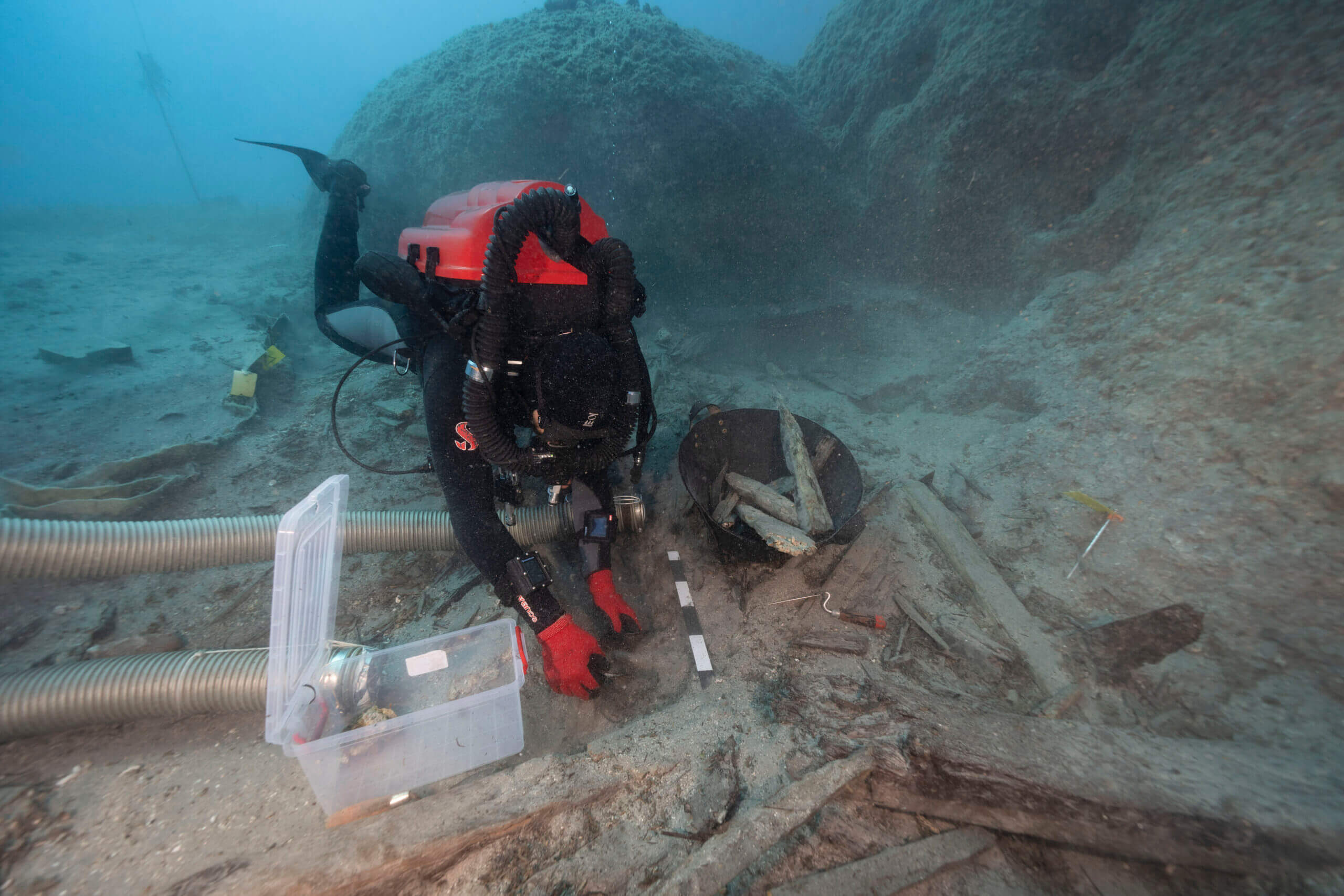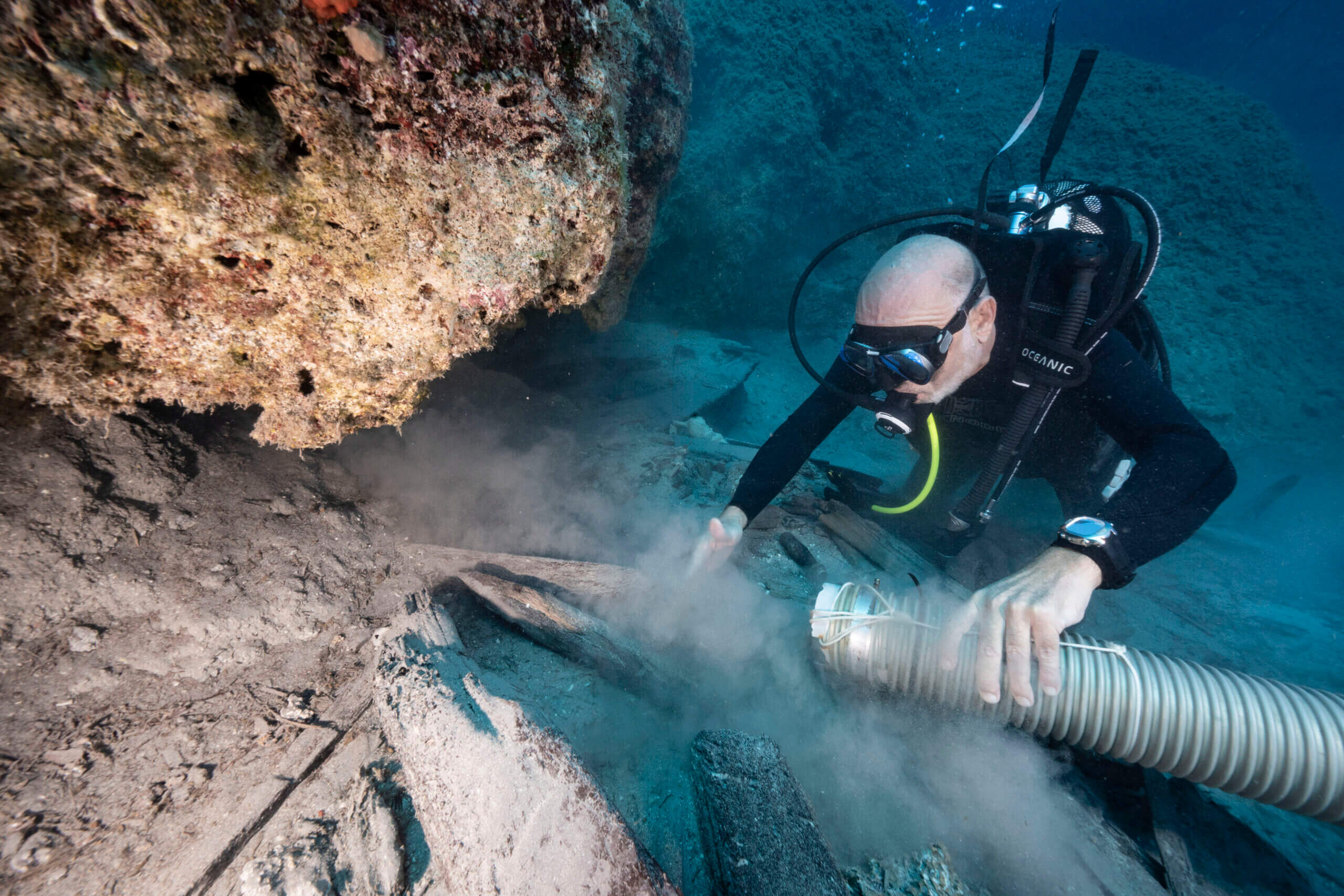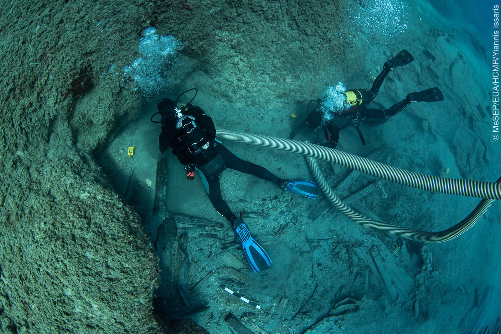 Στο διάστημα 4/9/20 έως 21/9/20 διενεργήθηκε η συστηματική υποβρύχια αρχαιολογική έρευνα της Εφορείας Εναλίων Αρχαιοτήτων στο ιστορικό ναυάγιο ΜΕΝΤΩΡ (εικ. 1) στα Κύθηρα, υπό την διεύθυνση του αρχαιολόγου, Δρ. Δημήτρη Κουρκουμέλη. Κατά τη φετινή υποβρύχια ανασκαφική έρευνα, συνεχίσθηκε η διερεύνηση και ανασκαφή της τομής που είχε ήδη αρχίσει το 2019, στο δυτικό όριο του σωζόμενου σκαριού του πλοίου (εικ. 2, 3). Στον χώρο της τομής εντοπίσθηκαν πολλά ξύλα, τόσο από το πέτσωμα του πλοίου, όσο και τμήματα νομέων. Τα τμήματα αυτά ήταν διάσπαρτα και χωρίς συγκεκριμένη διάταξη, που μαρτυρούν τη γενικότερη καταστροφή που συντελέσθηκε στο χώρο του ναυαγίου κατά τη βύθισή του, όσο και κατά τις μετέπειτα διεργασίες ναυαγιαιρεσίας. Η εικόνα της καταστροφής του πλοίου ήταν ιδιαίτερα έντονη, καθώς τμήματα των νομέων βρέθηκαν να έχουν παγιδευτεί κάτω από βράχια, ενδεικτικό και της σφοδρότητας του κυματισμού που προκαλούν στην περιοχή κυρίως οι νότιοι άνεμοι (εικ. 4) και οι οποίοι επηρεάζουν το πυθμένα σε μεγάλο βάθος.