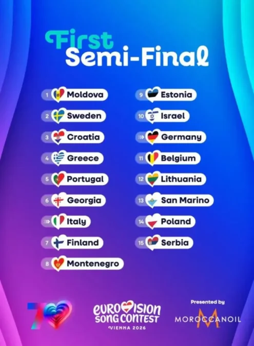 Ανακοινώθηκε η σειρά εμφάνισης για τους δύο ημιτελικούς της Eurovision Song Contest 2026, με την ελληνική συμμετοχή να παίρνει θέση στην πρώτη βραδιά του διαγωνισμού.