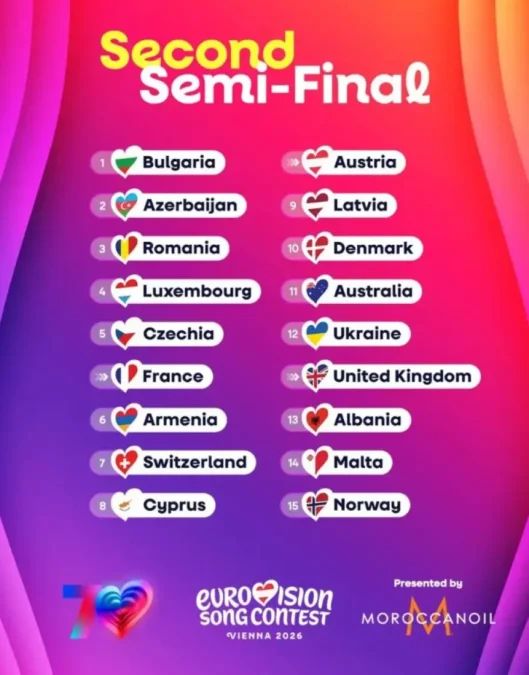 Η σειρά εμφάνισης στον Β’ Ημιτελικό