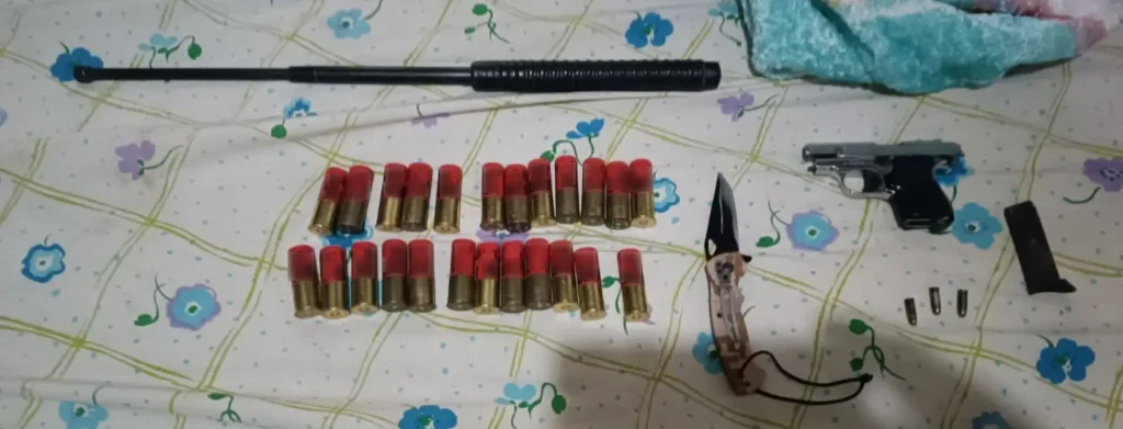 Κατά τη διάρκεια της επιχείρησης πραγματοποιήθηκαν έλεγχοι σε 15 άτομα, καθώς και σε οικίες και καταστήματα, με τους αστυνομικούς να εντοπίζουν και να κατάσχουν, μεταξύ άλλων, πιστόλι, καραμπίνα με σβησμένο σειριακό αριθμό, φυσίγγια, μαχαίρια και ναρκωτικές ουσίες.