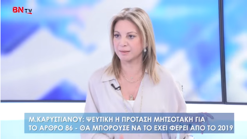 - Σαφές πολιτικό στίγμα έδωσε η Μαρία Καρυστιανού σε νέα συνέντευξή της, μιλώντας για το κόμμα που ετοιμάζει, τα Τέμπη, τη Δικαιοσύνη, αλλά και τα ελληνοτουρκικά, με αιχμές για τον τρόπο που η κυβέρνηση διαχειρίζεται κρίσιμα ζητήματα.