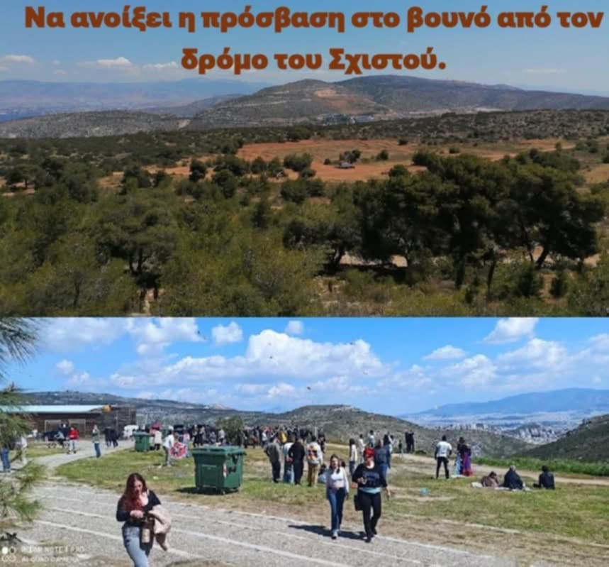 - Η είσοδος προς το βουνό, που για δεκαετίες αποτελούσε σημείο αναψυχής και περιπάτου για τους κατοίκους, είναι πλέον κλειστή, καθώς η Εκκλησία και η Μονή φέρονται να διεκδικούν την ιδιοκτησία της περιοχής.