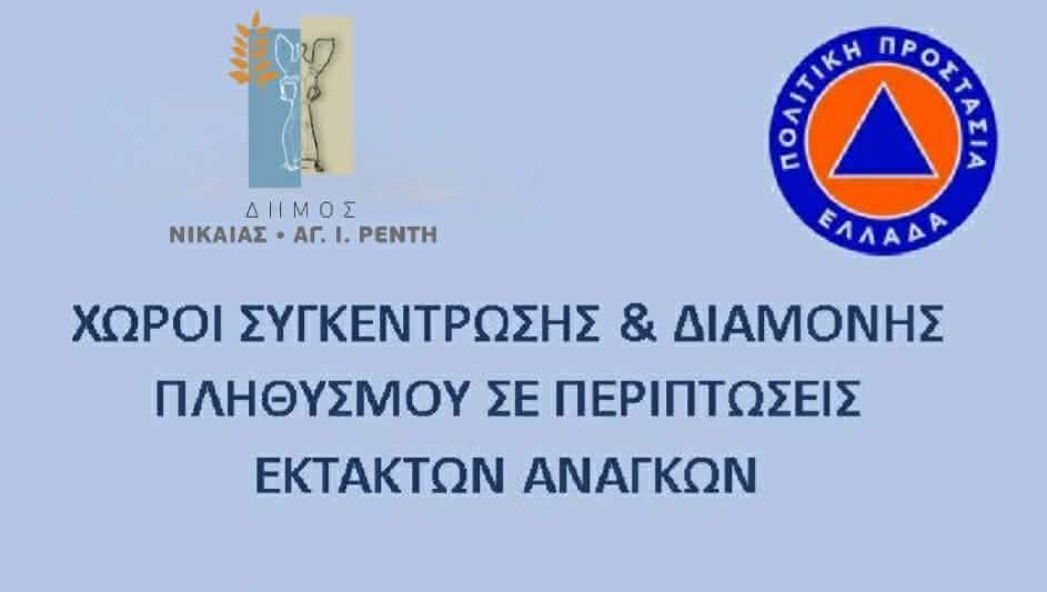 - Ο Δήμος Νίκαιας–Αγίου Ιωάννη Ρέντη ανακοίνωσε ότι θέτει σε λειτουργία θερμαινόμενους χώρους και σημεία καταφυγής για πολίτες που χρειάζονται προστασία από τα έντονα καιρικά φαινόμενα των τελευταίων ημερών.