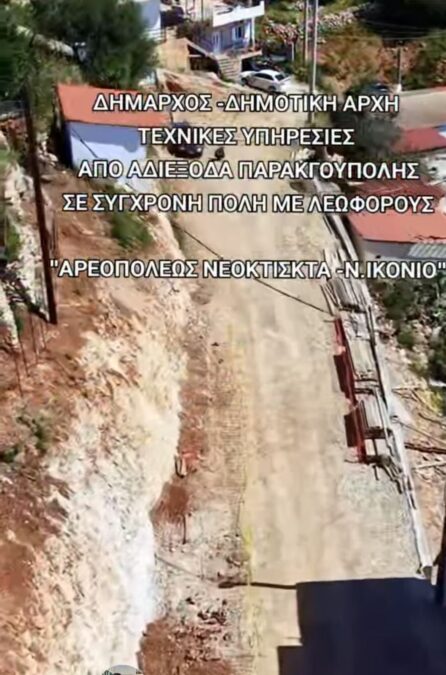 - Βαίνει προς ολοκλήρωση το έργο διάνοιξης της Λεωφόρου Αρεοπόλεως στο Άνω Πέραμα – ένα έργο που για δεκαετίες οι κάτοικοι της περιοχής περίμεναν, ζώντας σε συνθήκες εγκλωβισμού και αδιεξόδου σε περίπτωση έκτακτης ανάγκης.