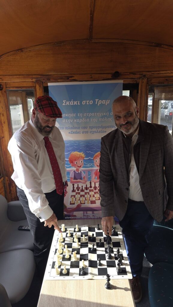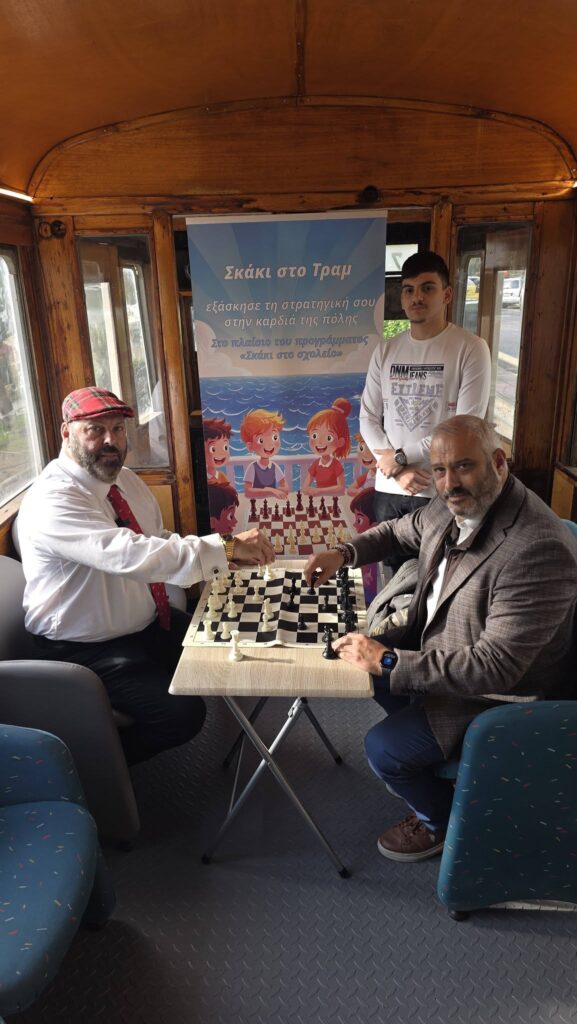 Δωρεάν πρόγραμμα εκμάθησης σκακιού για μαθητές της πόλης σε σχολεία και στο ανακαινισμένο τραμ – Έμφαση στην κριτική σκέψη και τη στρατηγική.