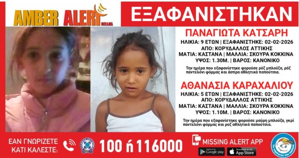 Πρόκειται για την Παναγιώτα Κάτσαρη, 9 ετών, και την Αθανασία Καραχάλιου, 5 ετών, τα ίχνη των οποίων χάθηκαν τη Δευτέρα 2 Φεβρουαρίου 2026 και ώρα 15:00. Έκτοτε, οι ανήλικες αγνοούνται.