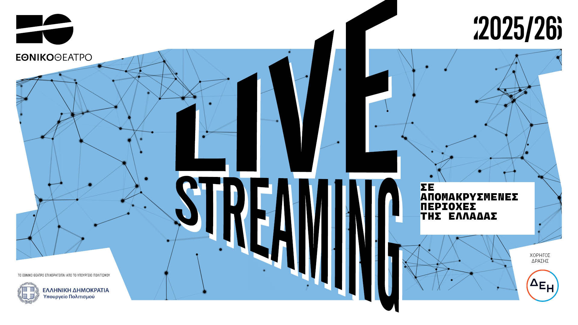 - Το Εθνικό Θέατρο εγκαινιάζει έναν νέο κύκλο εξ αποστάσεως θεάματος, μεταδίδοντας ζωντανά κορυφαίες παραγωγές του σε απομακρυσμένες περιοχές της χώρας.