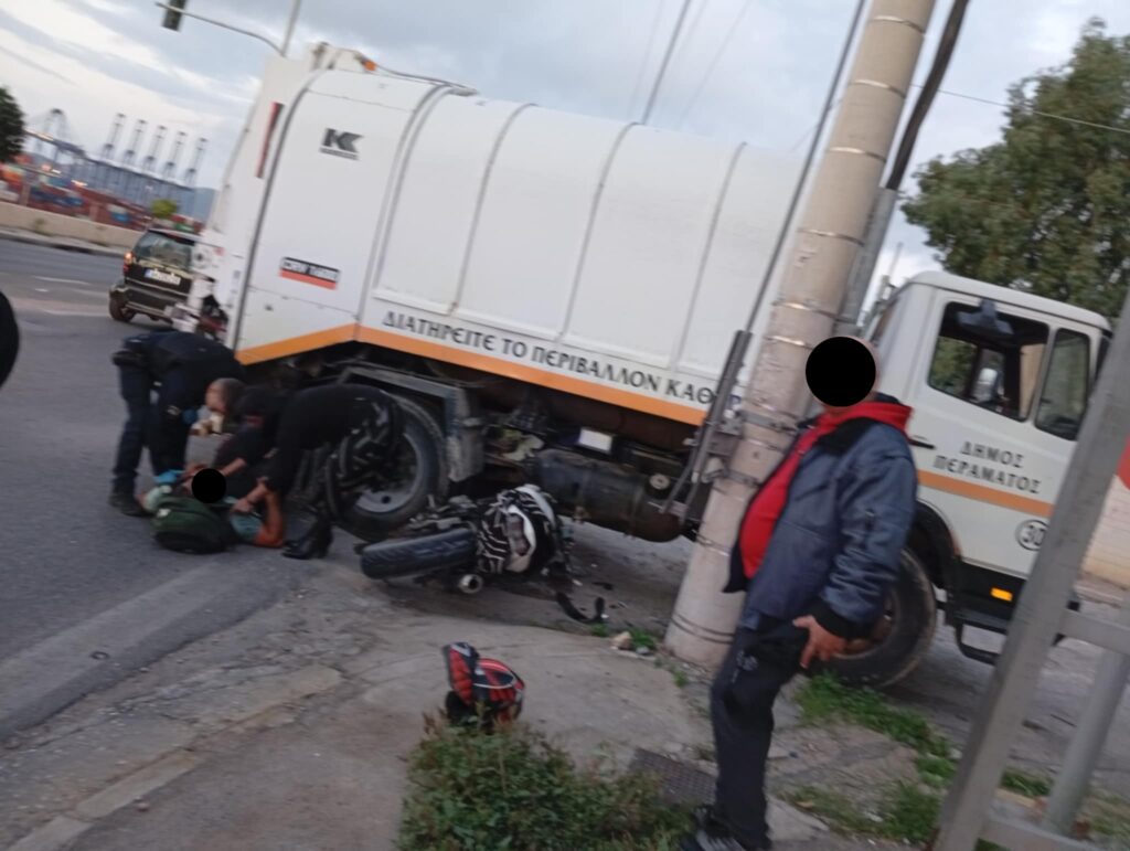 Σοβαρό τροχαίο σημειώθηκε στο Ικόνιο Περάματος, όταν απορριμματοφόρο επιχείρησε παράνομη αναστροφή στο φανάρι, με αποτέλεσμα τη σύγκρουση με διερχόμενο μοτοσικλετιστή.