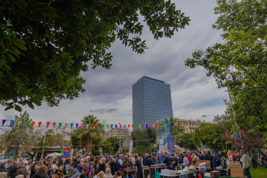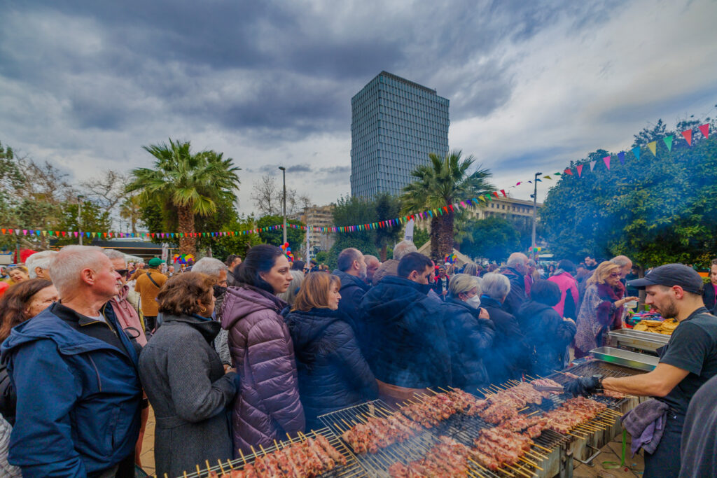 Παράλληλα, στους παρευρισκόμενους προσφέρθηκαν δωρεάν ψητά, παραδοσιακοί μεζέδες και κρασί, συμπληρώνοντας το σκηνικό και δημιουργώντας μια πραγματική λαϊκή γιορτή στην καρδιά της πόλης.